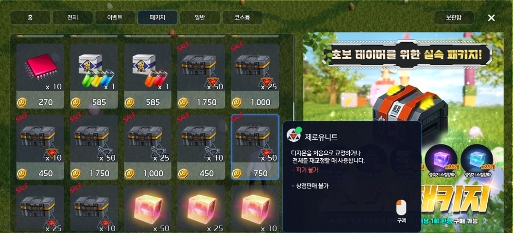 ● 제로유니트 50개 : 1,500 크라운 → 할인가 750 크라운