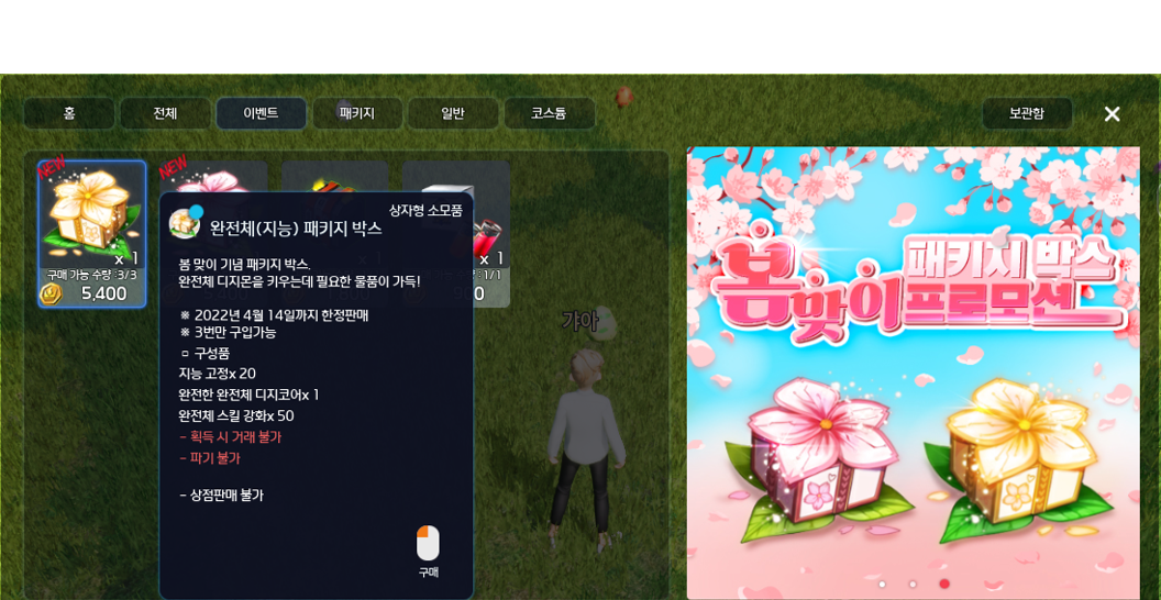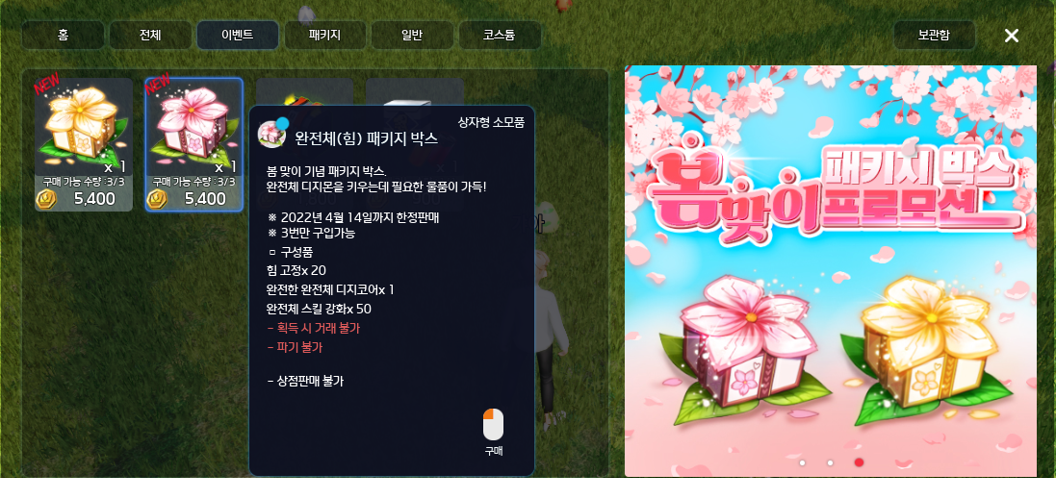 ※ 각 패키지 박스는 3번만 구입 가능합니다.