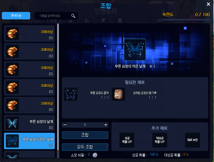 [ 푸른 요정의 흔적(날개) 조합 방법 ]