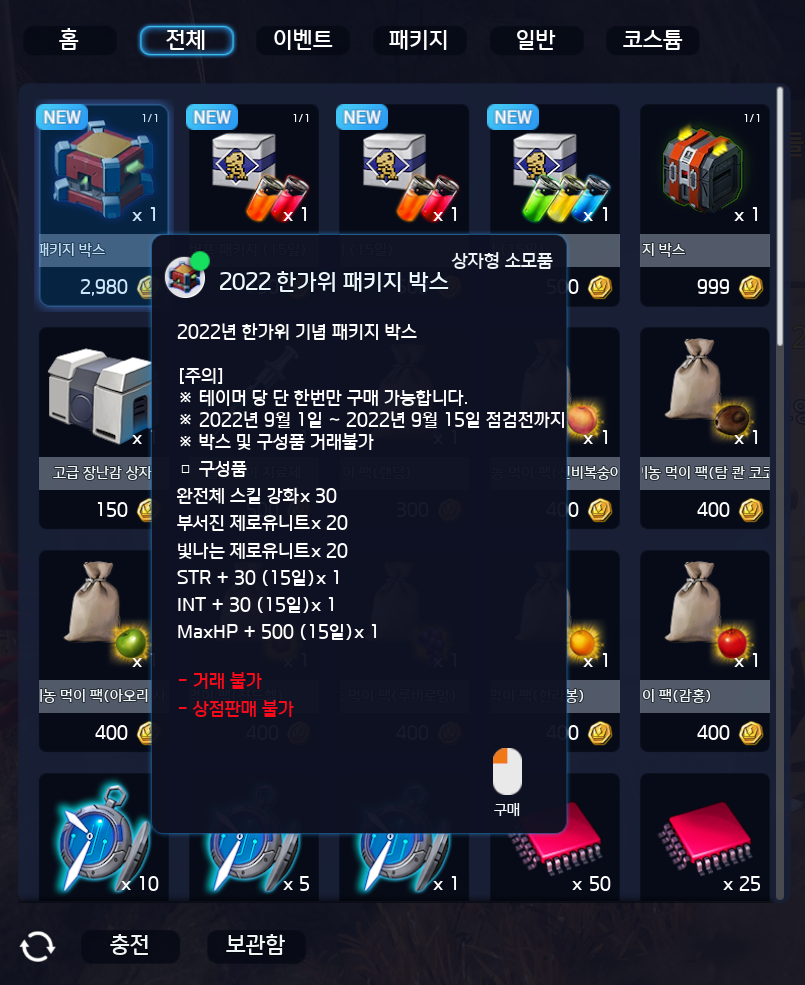 기간 : 2022년 9월 01일(목) 점검 후 ~ 2022년 9월 15일(목) 점검 전까지