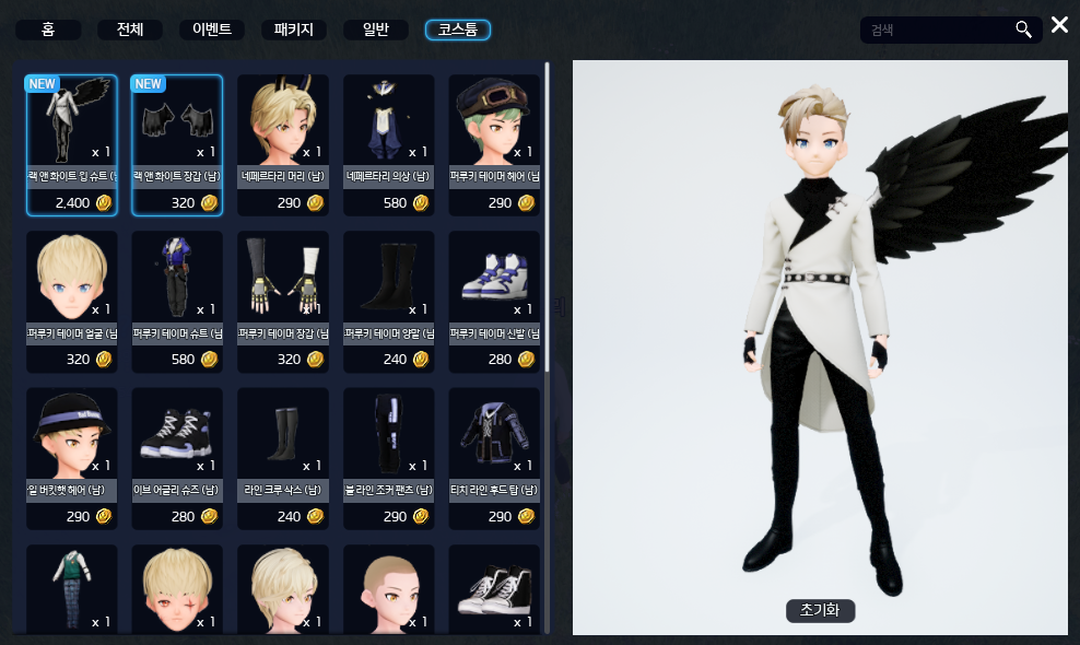 블랙 앤 화이트 윙 슈트 (남) : 2400 크라운