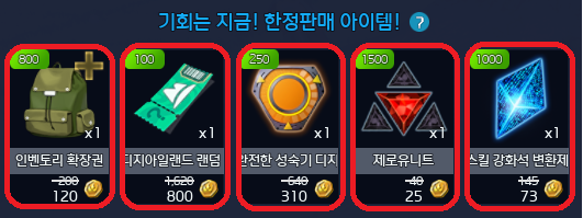 ※ 5종의 아이템 중 1개를 랜덤으로 획득 가능합니다.