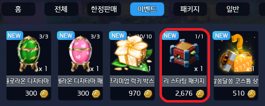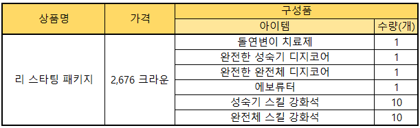 ※ 각 패키지는 2주 동안 3회 구매 가능하며, 2주마다 패키지가 변경됩니다.