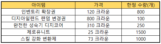 ※ 거래 불가, 파기 불가, 상점 판매 불가한 상품입니다.