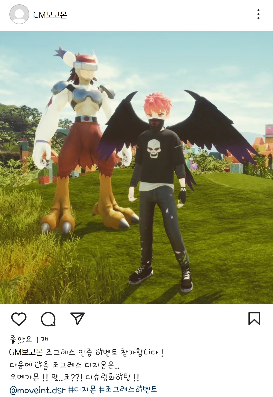※ 3종류의 해시태그 (@moveint.dsr, #디지몬, #조그레스이벤트)는 필수로 포함되어있어야 하며
