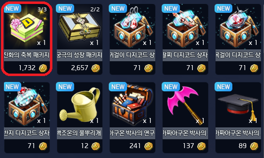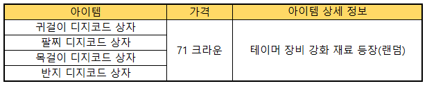 ▶ 테이머 장비 강화 재료 [디지코드 상자] 판매