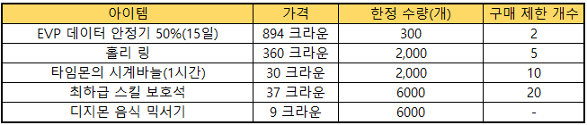 ※ 판매 기간 : 2024년 08월 29일(목) 정기점검 이후 ~ 2024년 09월 12일(목) 예정된 정기점검 전까지