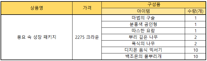 ※ 각 패키지는 2주 동안 3회 구매 가능하며, 2주마다 패키지가 변경됩니다.