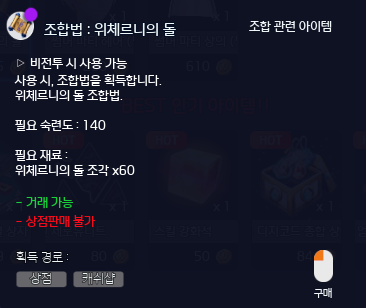 ※ 조합을 통해 [위체르니의 돌]을 획득할 수 있습니다.
