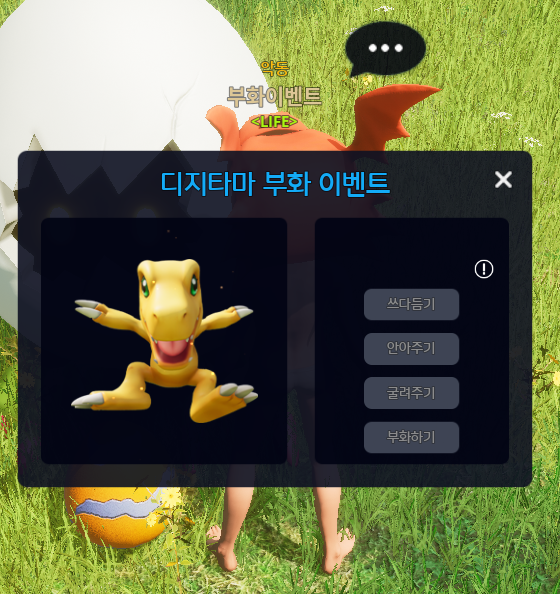 4. 디지타마를 열심히 사랑해주면 부화하기 버튼이 활성화 됩니다!
