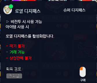 ※ 아이템 사용 시 로열 디지패스를 활성화합니다.