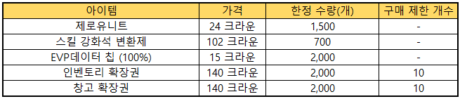 ▶ 한정 판매 아이템 품목 추가
