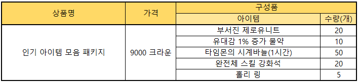※ 각 패키지는 2주 동안 3회 구매 가능하며, 2주마다 패키지가 변경됩니다.