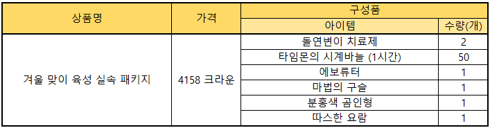 겨울 맞이 육성 실속 패키지