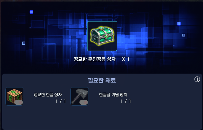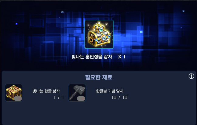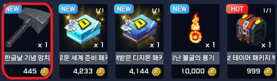 ※ 한글날 기념 망치는 한글 상자와 조합을 통해 아이템을 획득할 수 있습니다.