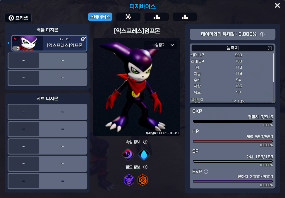 ▶ 디지몬 정보 (익스프레스 디지몬에서 일반 디지몬으로 레벨 업하며 변경됩니다.)