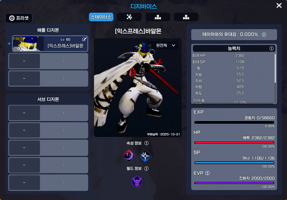 - 60레벨의 완전체 [익스프레스]바알몬 진화