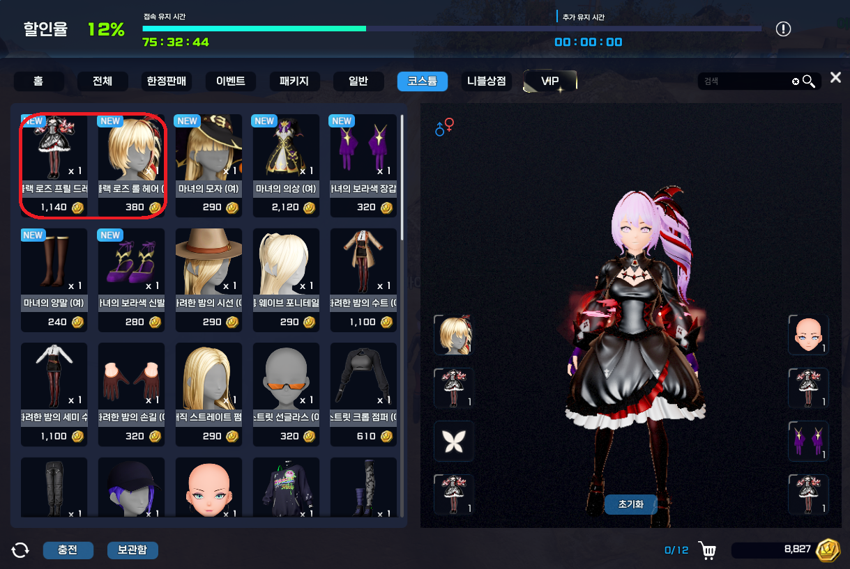 블랙 로즈 롤 헤어 (여): 380 크라운