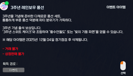 * 해당 보상 아이템은 거래 불가로 지급됩니다.