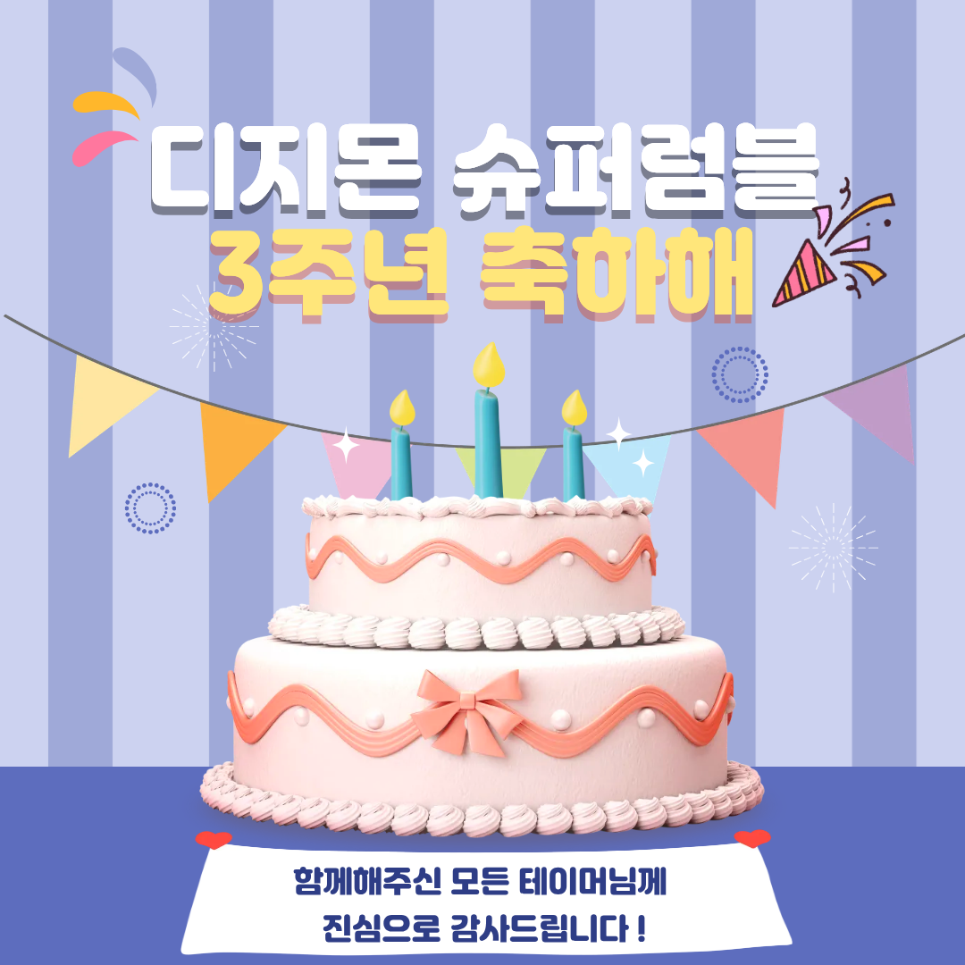 어느덧 디지몬 슈퍼럼블이 테이머 여러분과 함께한 지 3주년을 맞이했습니다!