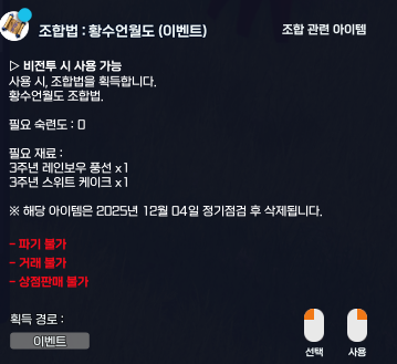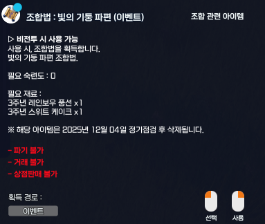 * 조합법 : 빛의 기둥 파편 (이벤트) |