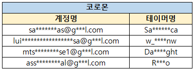 ※ 개인정보 보호를 위해 일부 *표기 되었습니다.