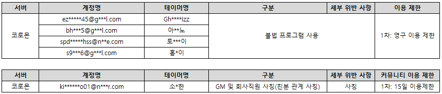 접수된 문의 내 확인된 운영정책 위반 계정 제재를 안내드립니다.