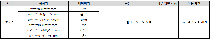 접수된 문의 내 확인된 운영정책 위반 계정 제재를 안내드립니다.