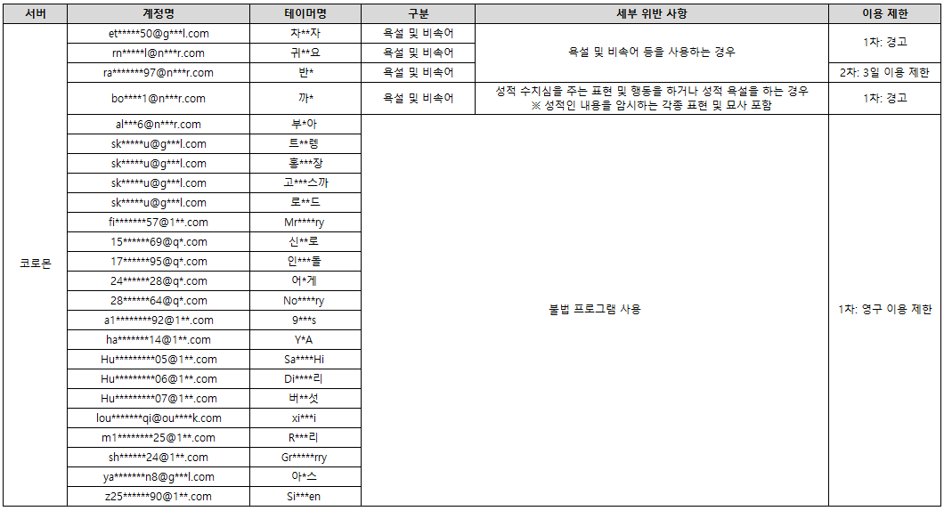 📢 운영정책 위반 계정 제재 안내 (수정)