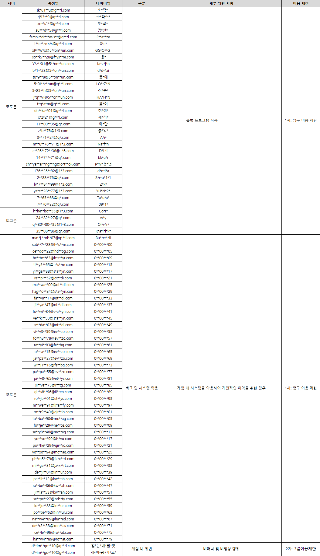 GM동글몬입니다. 지난 계정 제재 위반 목록 안내 이후