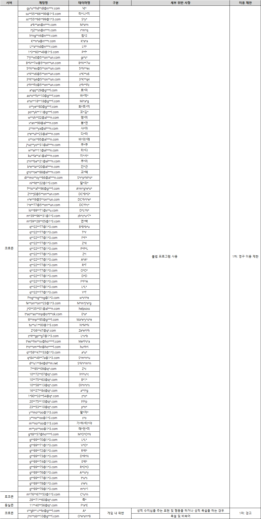 GM동글몬입니다. 지난 계정 제재 위반 목록 안내 이후