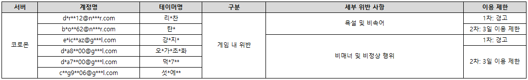 지난 계정 제재 위반 목록 안내 이후