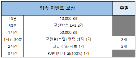 내용 : 이벤트 기간 동안 접속 미션 이벤트가 진행됩니다.