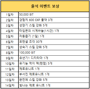 내용 : 이벤트 기간 동안 출석 이벤트가 진행됩니다.