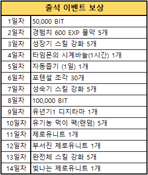 내용 : 이벤트 기간 동안 출석 이벤트가 진행됩니다.