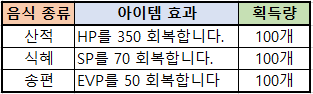 - 인절미 : 3시간 동안 아이템 드랍률 25% 증가