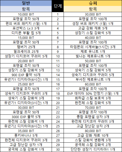 - 엔젤몬이 요청하는 퀘스트를 모두 완료하면 특별한 디지몬 육성 아이템을 획득 할 수있습니다.