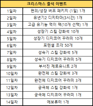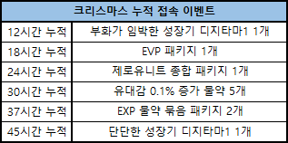 내용 : 이벤트 기간 동안 크리스마스 누적 접속 이벤트가 진행됩니다.