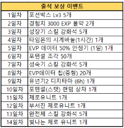 내용 : 이벤트 기간 동안 출석 이벤트가 진행됩니다.