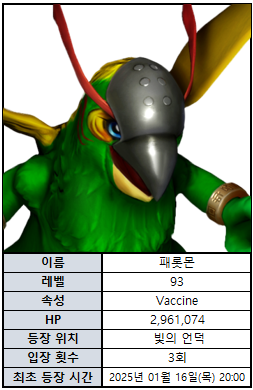 신규 필드 보스 패롯몬이 등장합니다.