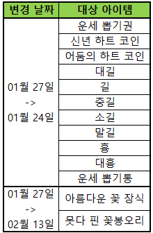 - 일부 이벤트 아이템의 회수 날짜가 변경 됩니다.
