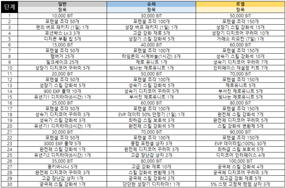 - 슈퍼 디지패스, 로열 디지패스 보상 변경