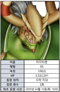 내용 : 타임몬 필드 레이드가 2025년 04월 10일(목)에 종료됩니다.