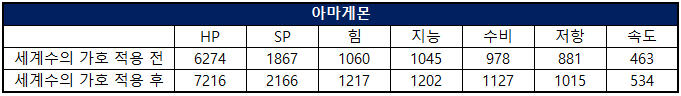 내용 : 세계수가 특정 디지몬에게 일정 기간동안 세계수의 가호를 내립니다.