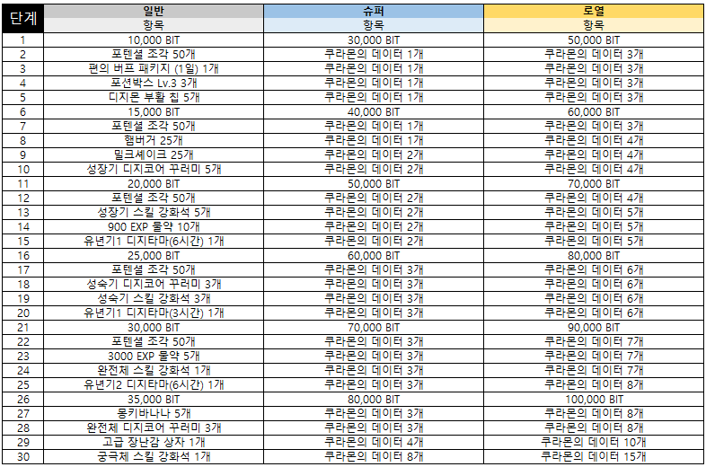 - 슈퍼 디지패스, 로열 디지패스 보상 변경
