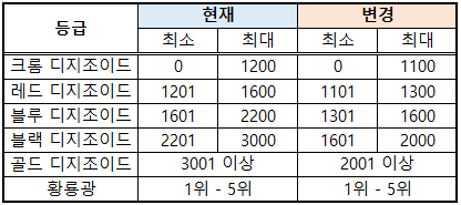 - 래더 PVP 랭킹 점수 기준이 변경됩니다.