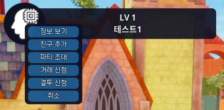 - 타 유저 캐릭터의 타겟팅 UI를 우클릭 하면 유저간 상호작용 메뉴가 출력됩니다.