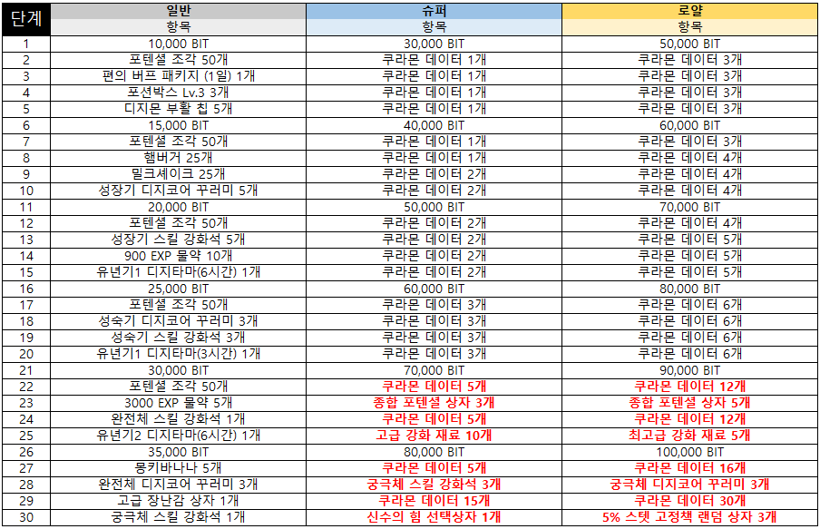- 디지패스 2025 시즌5 의 슈퍼 디지패스와 로열 디지패스의 일부 보상 구성이 변경됩니다.