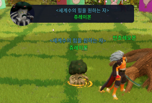 - NPC를 마우스 좌클릭을 통한 타겟팅 시 주황색 이펙트가 출력됩니다.