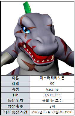 내용 : 아수라몬 필드 레이드가 2025년 05월 22일(목)에 종료됩니다.
